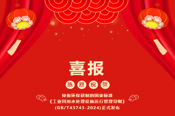 熱烈祝賀綠衡環保研制的國家標準《工業回用水處理設施運行管理導...